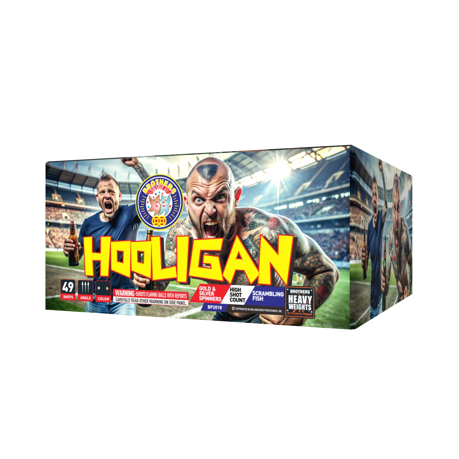 frwrX of red, white and blue with tails, crackling and golden glitter. A final row of blue stars with titanium crackling mines and brocade. Mixed diameters. 60 SHOTS