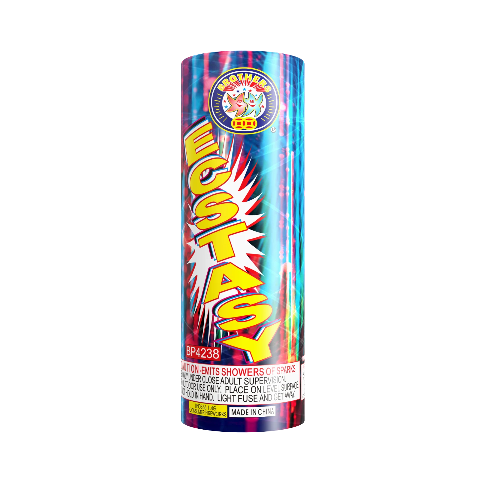 Jumping and bounding, flipping and sliding, the Super Fountain does it all. Red and green then purple and green stars with crackling, silver whistles, red, blue and green stars with chrysanthemums, silver tail with whistles and a big end with yellow and green stars with silver crackling.