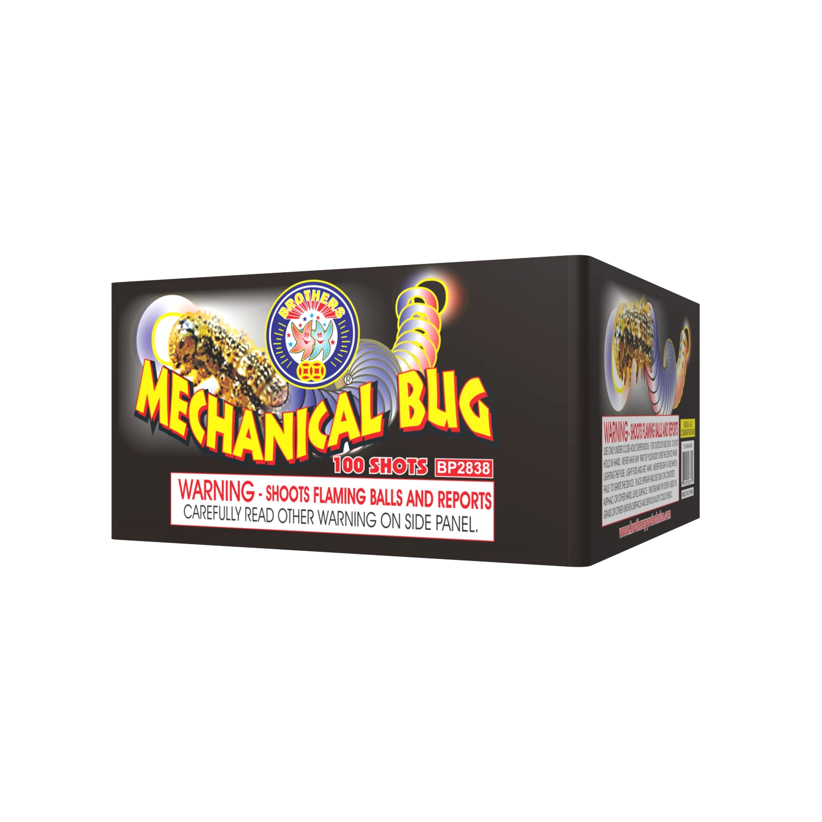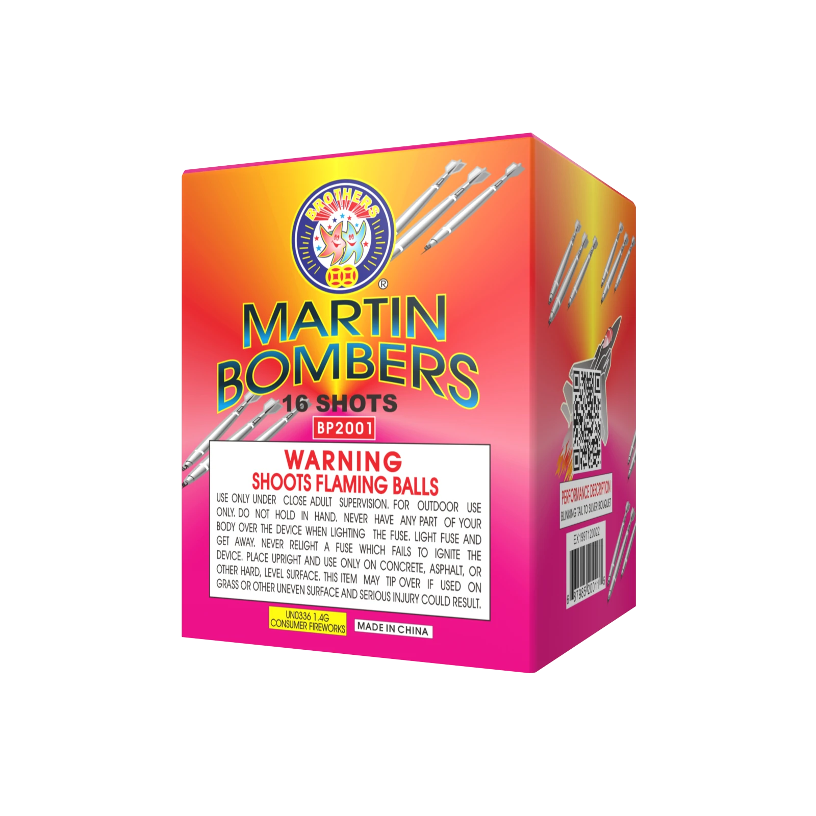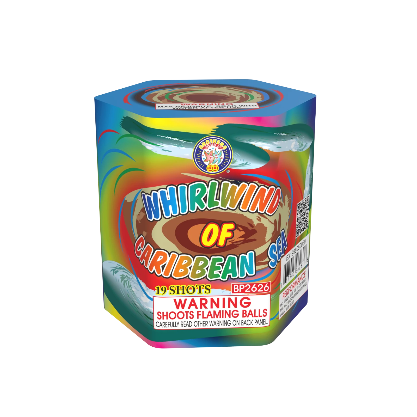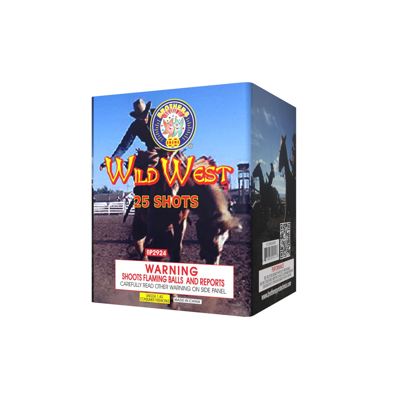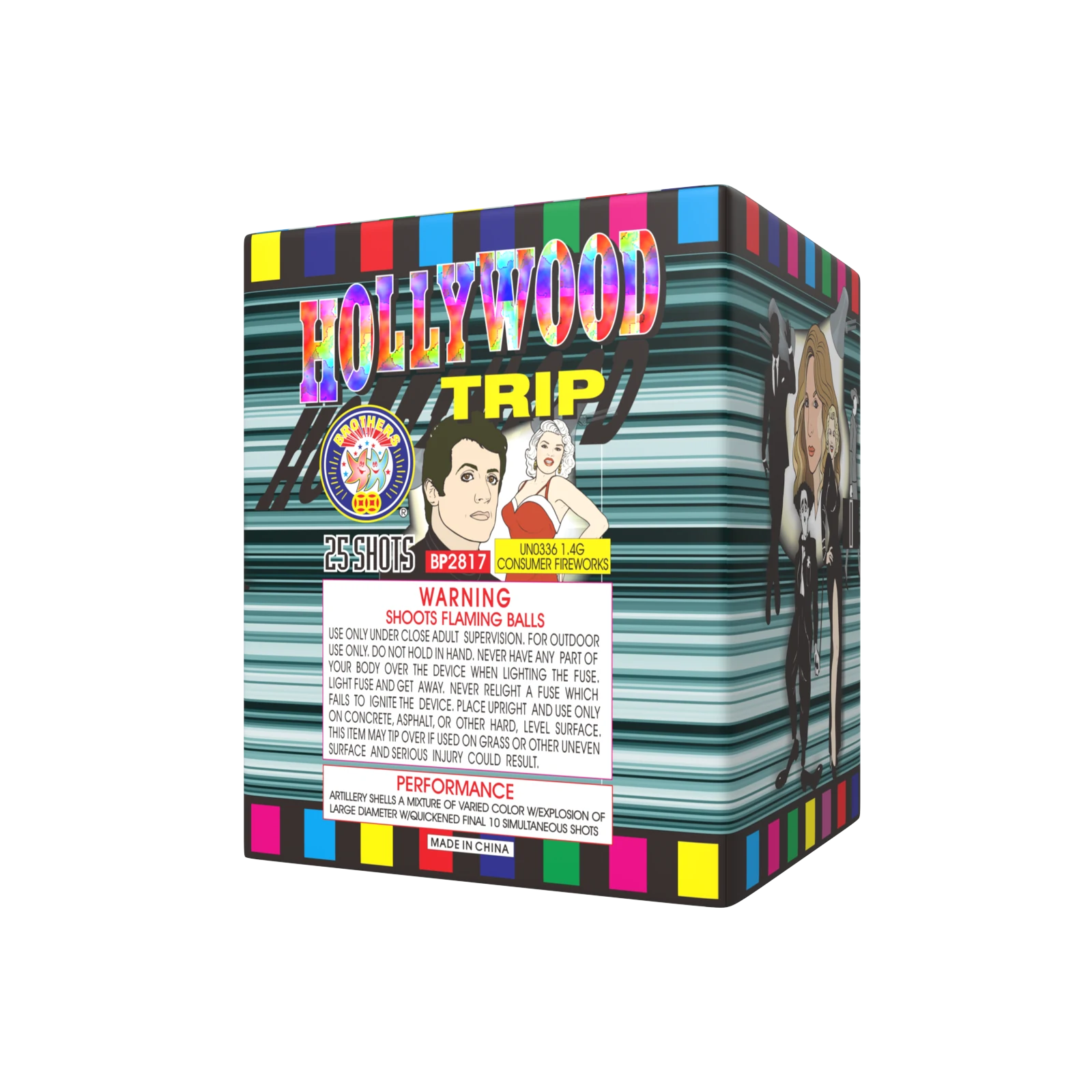Red, white tail to red, white bouquets, blue tail to blue stars, green tail to multi-color spinner with reports, crackling tail to crackling bouquets, 5 shots at a time. 25 SHOTS
