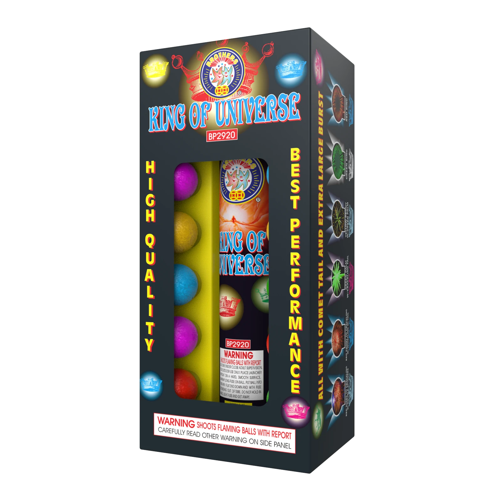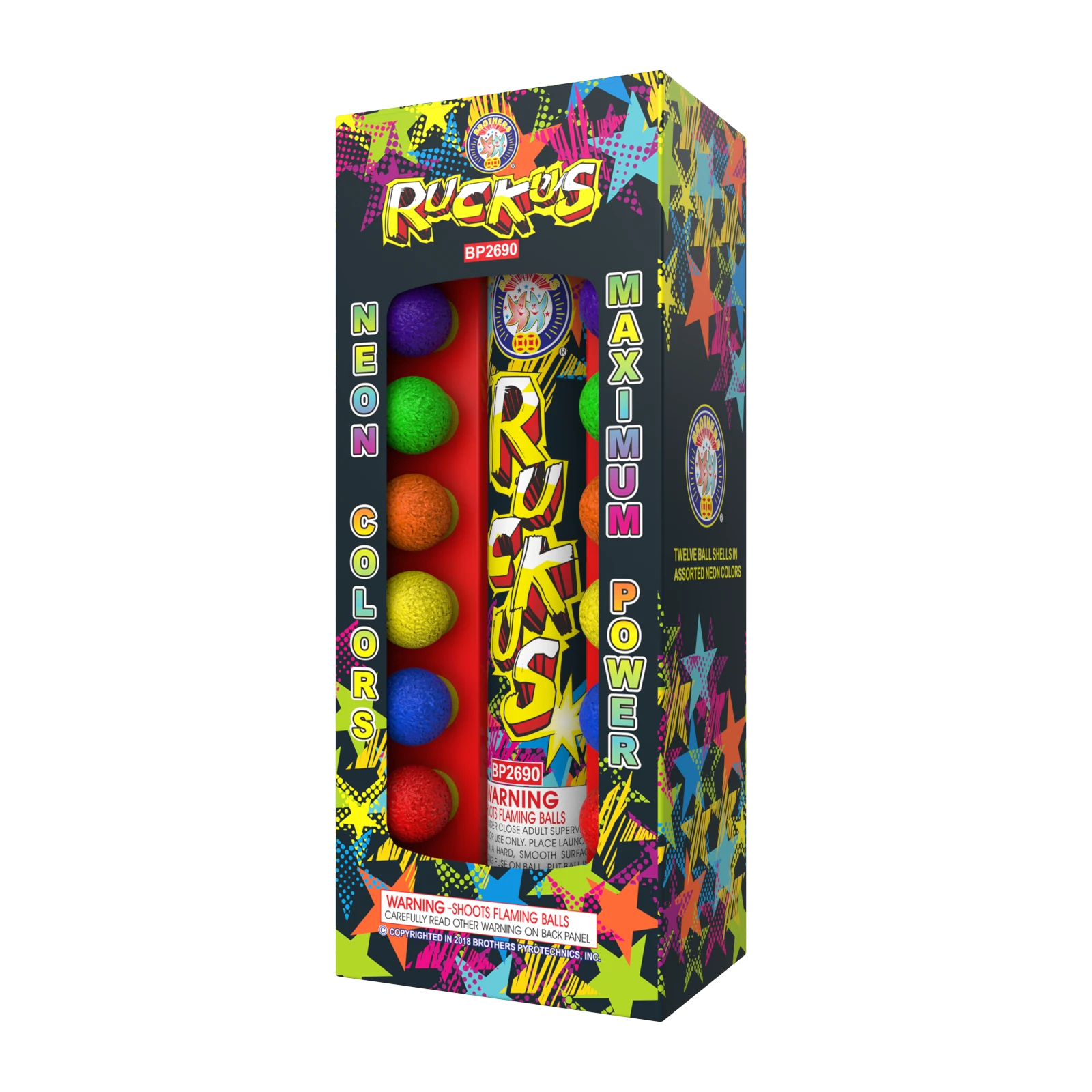 Twelve ball shells with assorted red stars, silver glitter, blue stars, brocade with red stars, brocade with silver glitter, brocade with blue stars, red stars with crackling, silver glitter with crackling, blue stars with crackling, red, white and blu