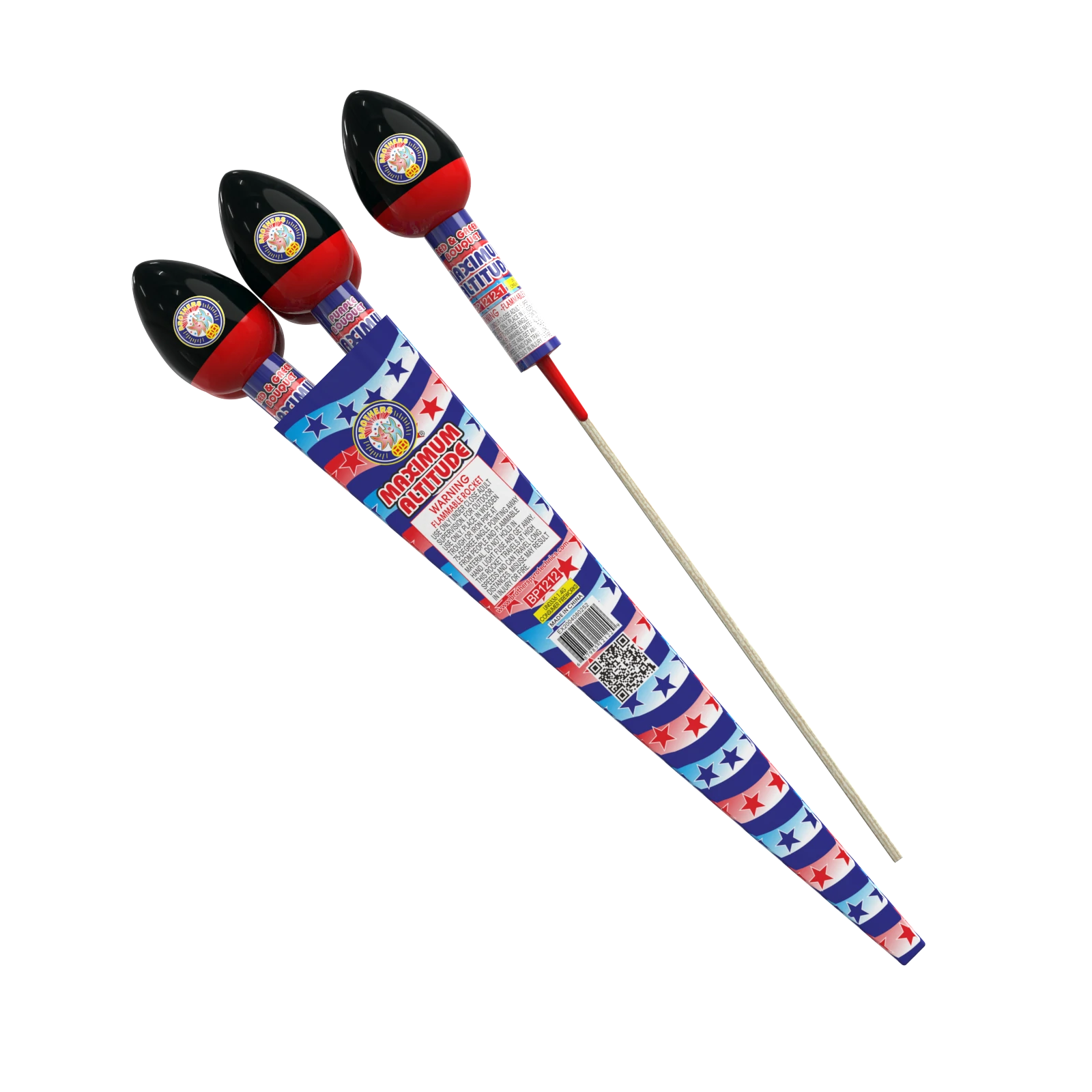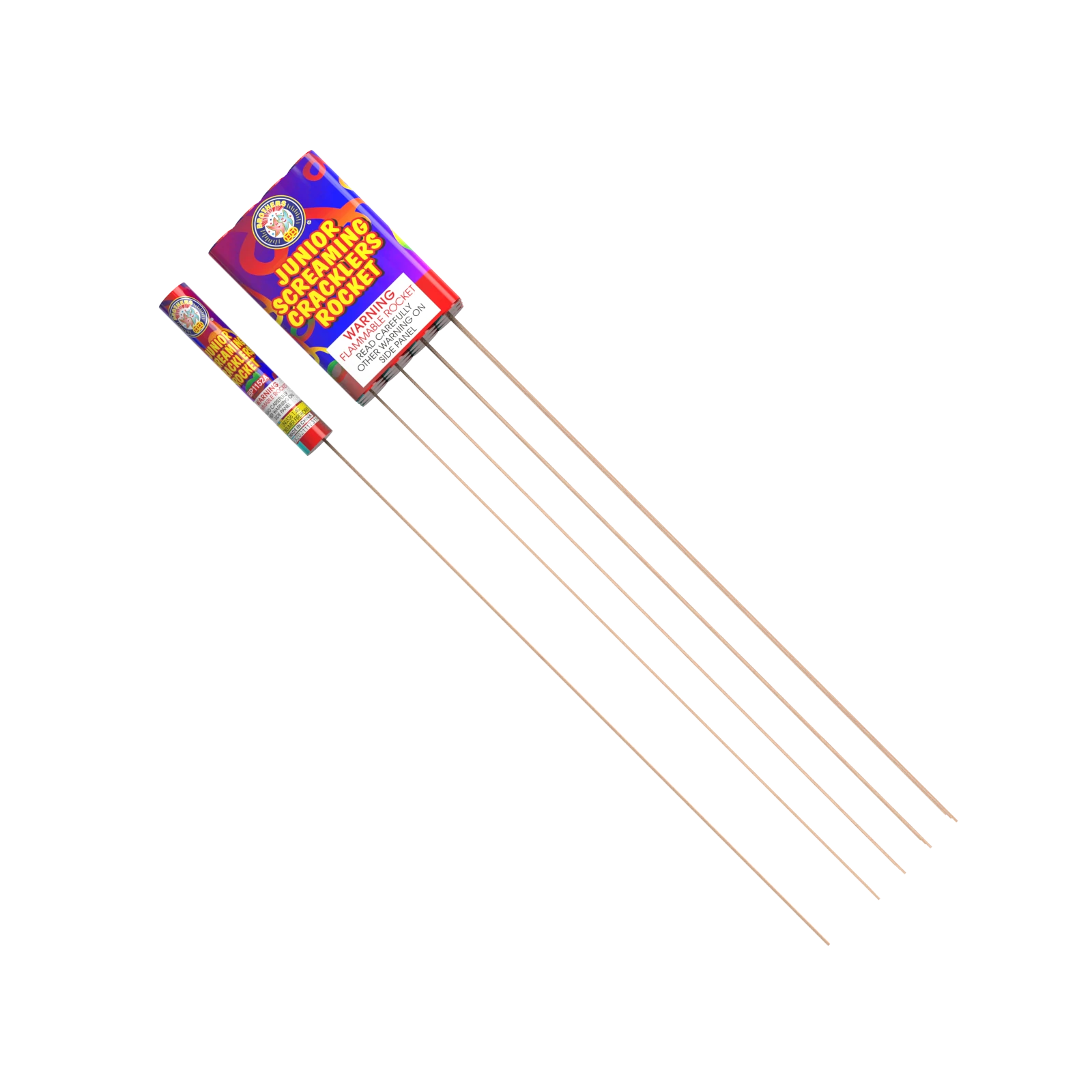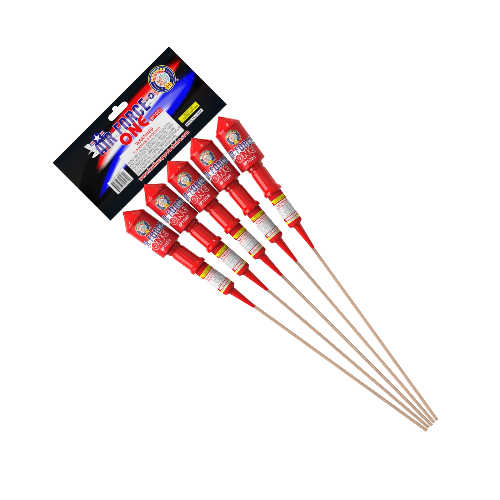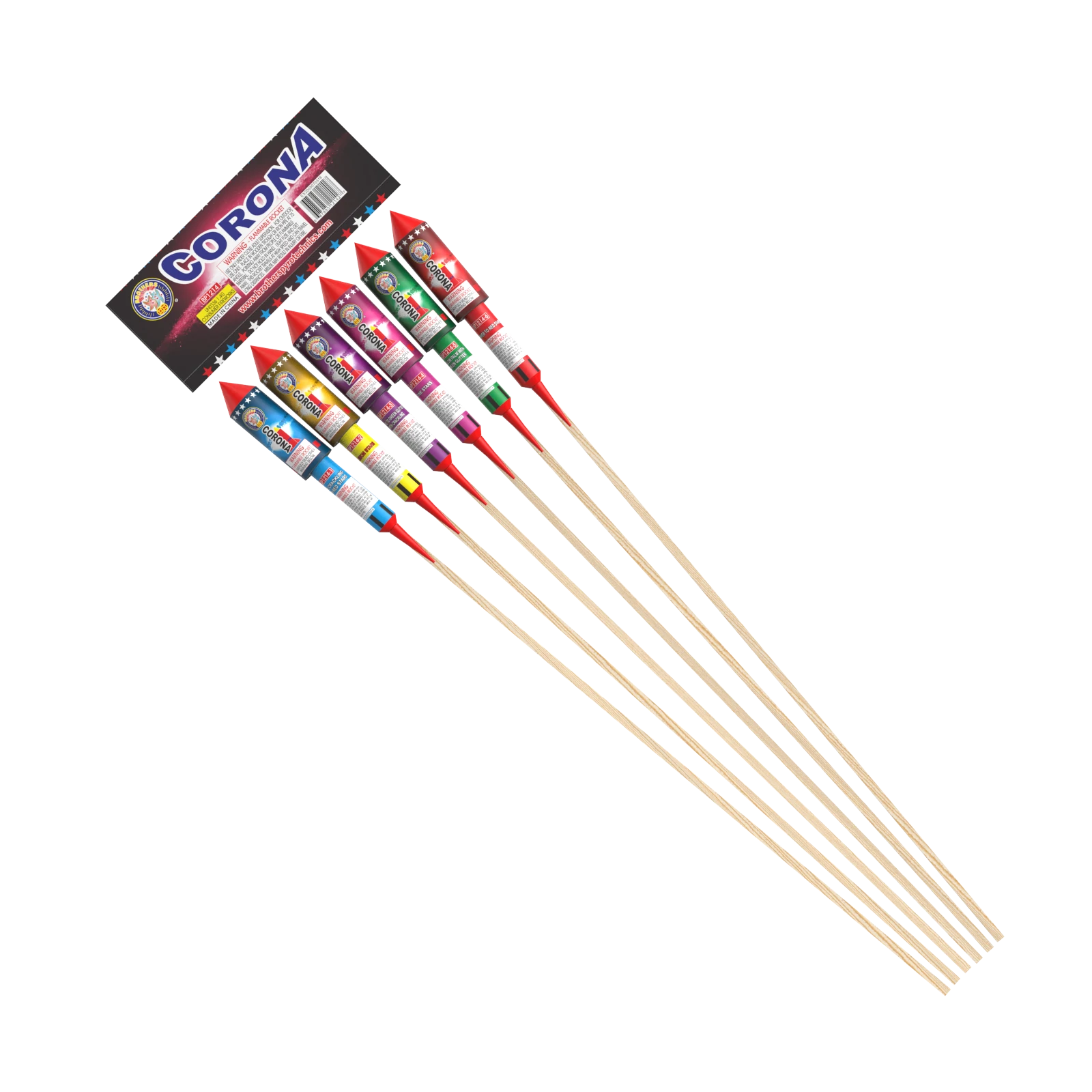 Variety pack of rockets - Brocade to red stars. Brocade to green stars. Brocade to multicolored stars. Titanium palms to crackling flowers. Red stars with silver glitter. Blue stars with silver glitter.