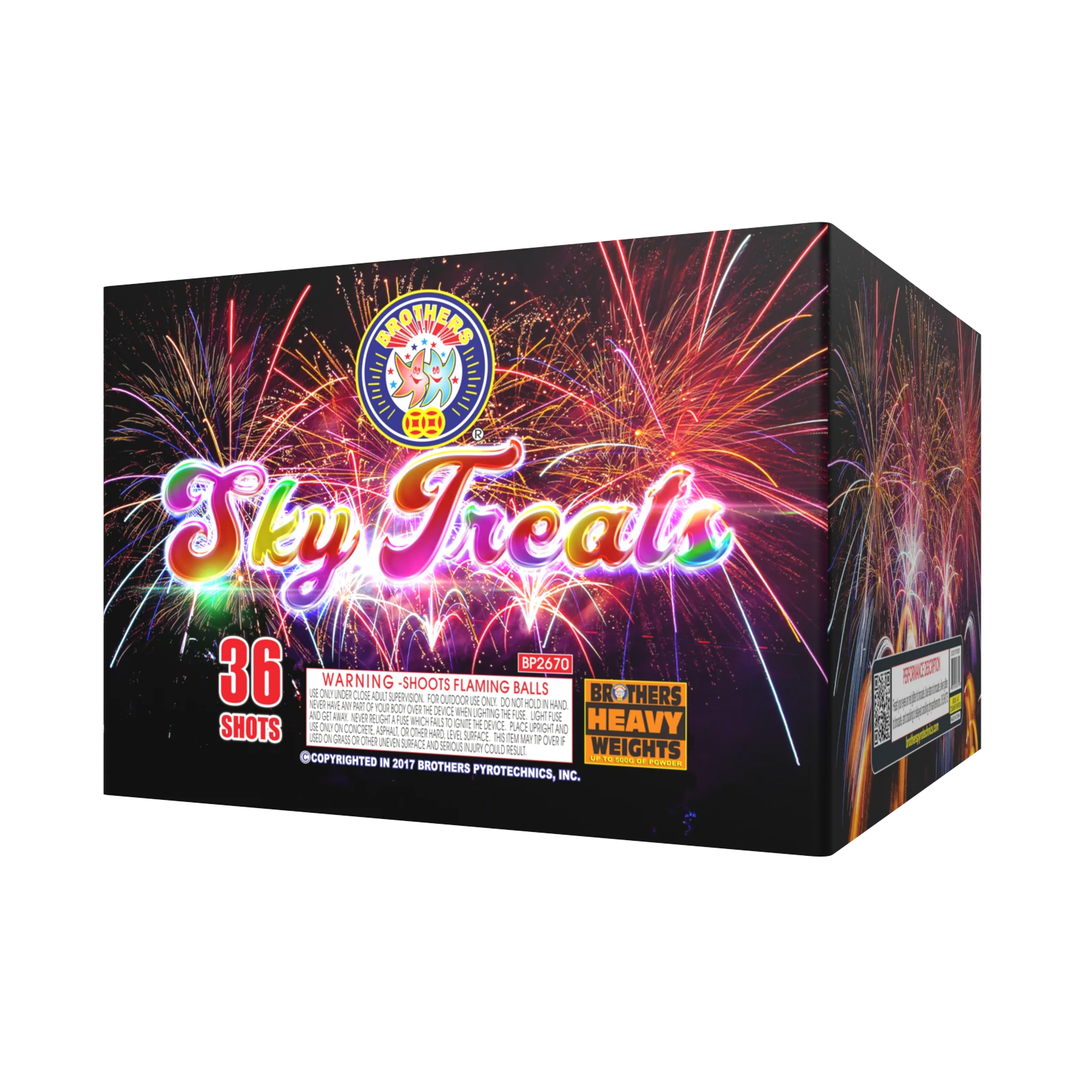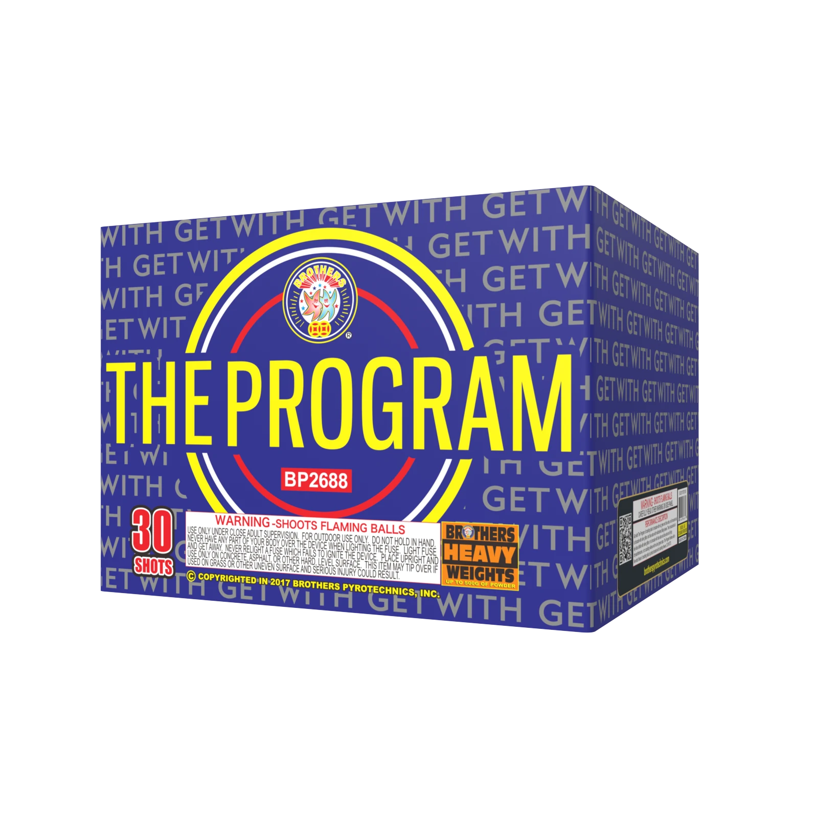 Crackling tails to brocade with red, green and blue stars, and brocade tails to brocade with silver glitter, and blue stars with multicolored falling leaves. Then brocade tails to sky-blue dahlia with silver glitter, or to brocade with blue stars and blue stars and flying chrysanthemums, or to crackling willows with red and green stars. Five-shot finale of crackling tails to jumbo brocade with crackling flowers. 30 SHOTS