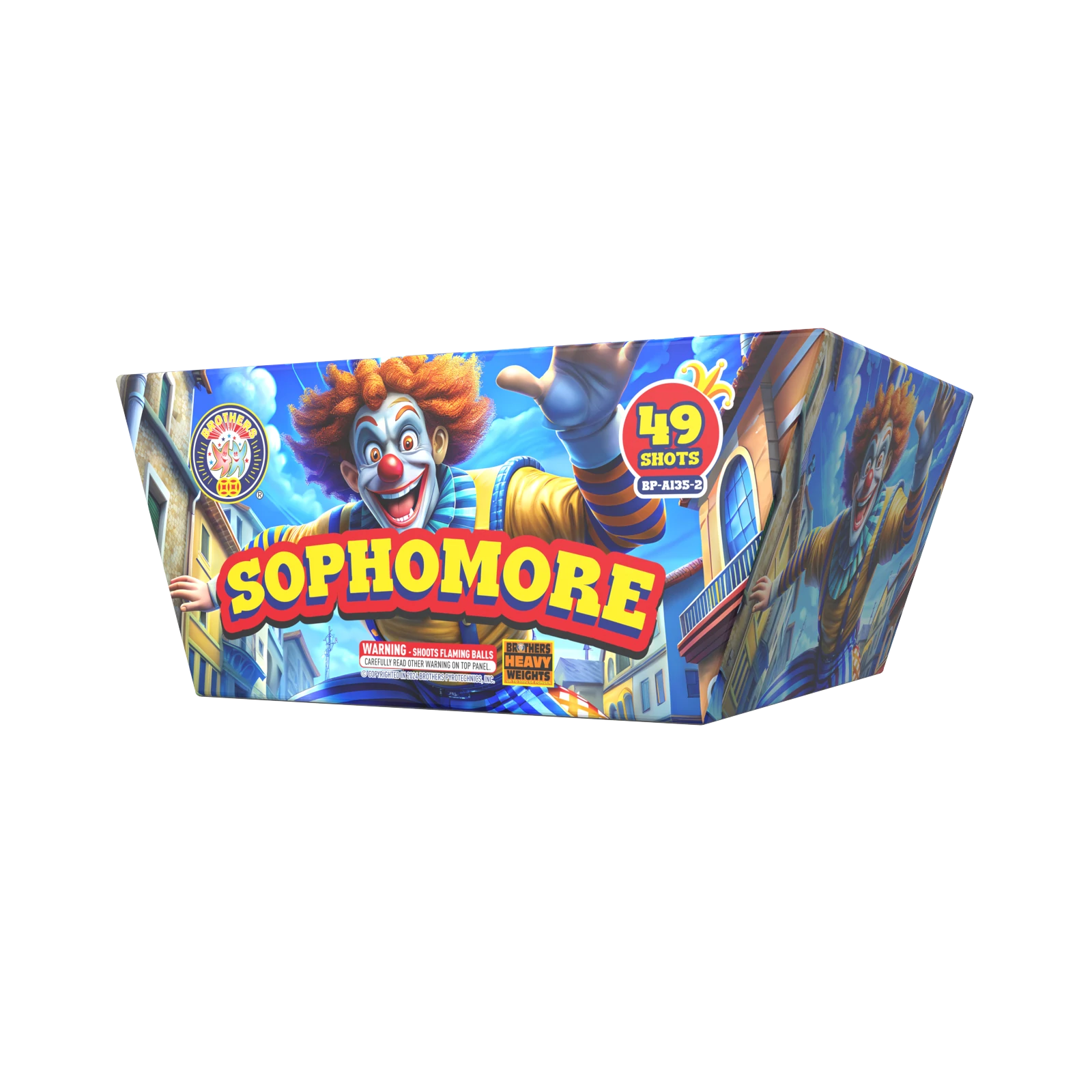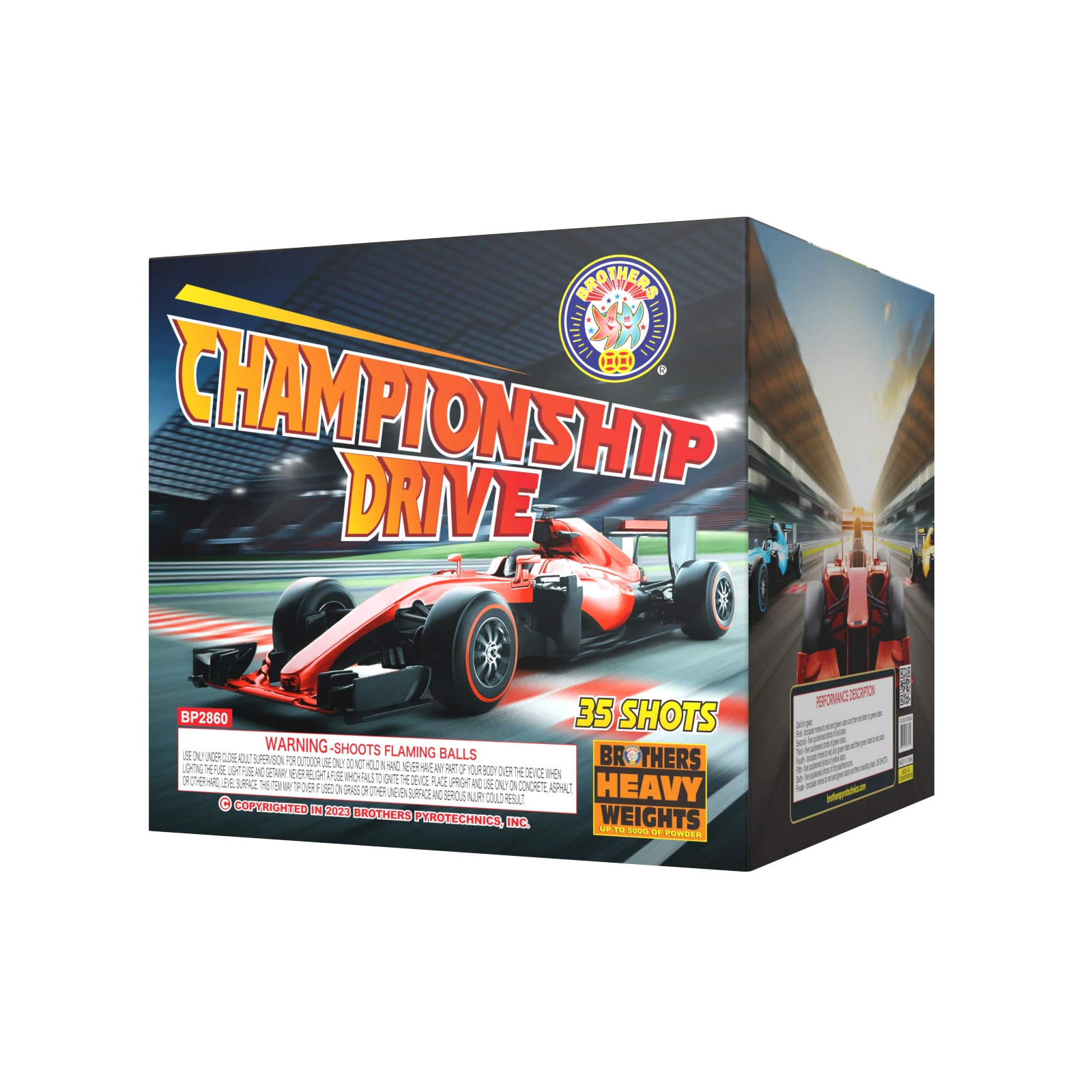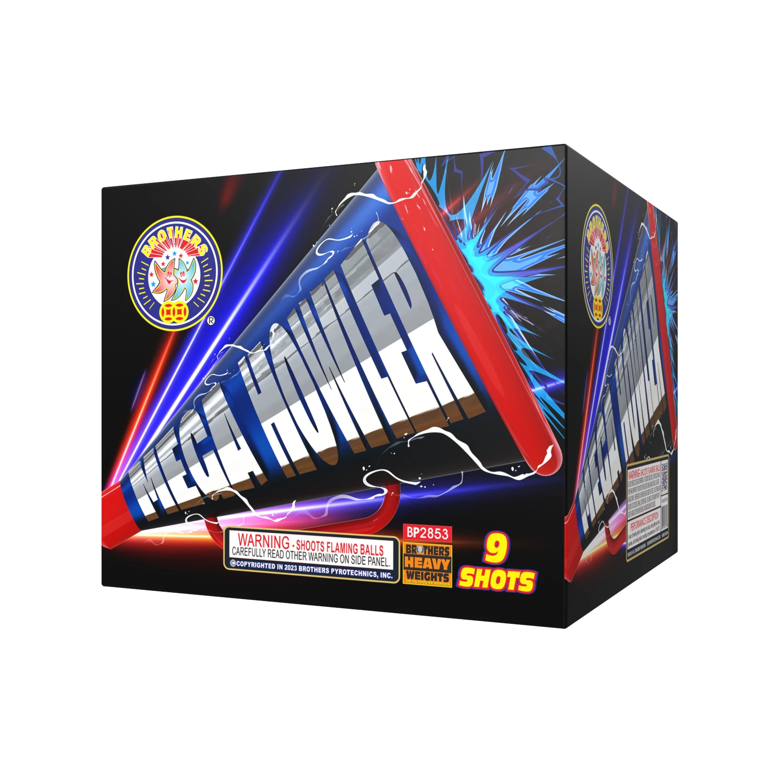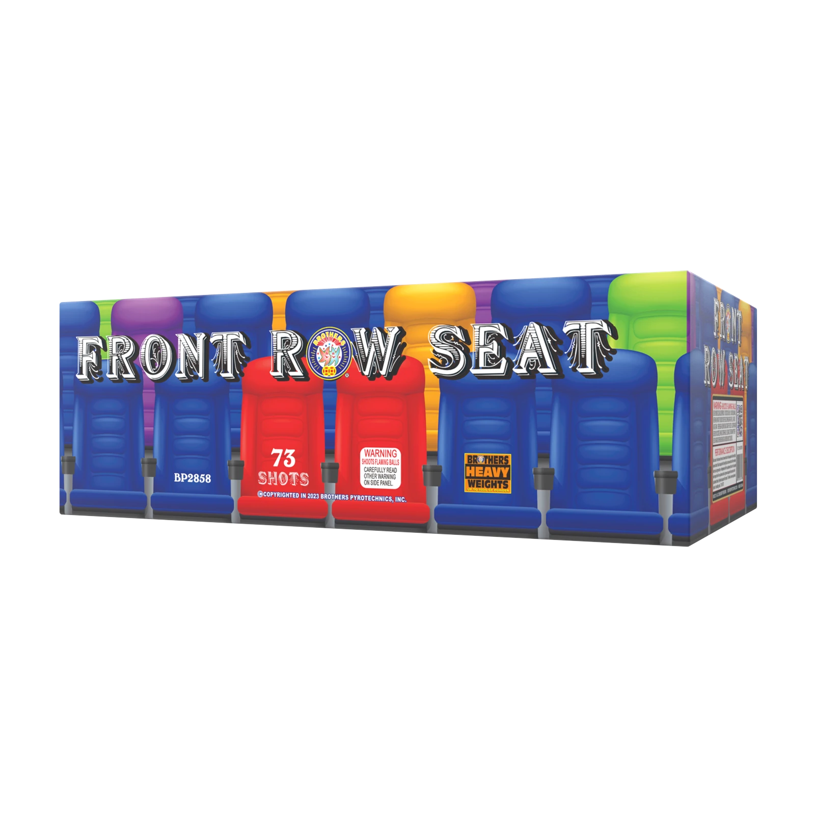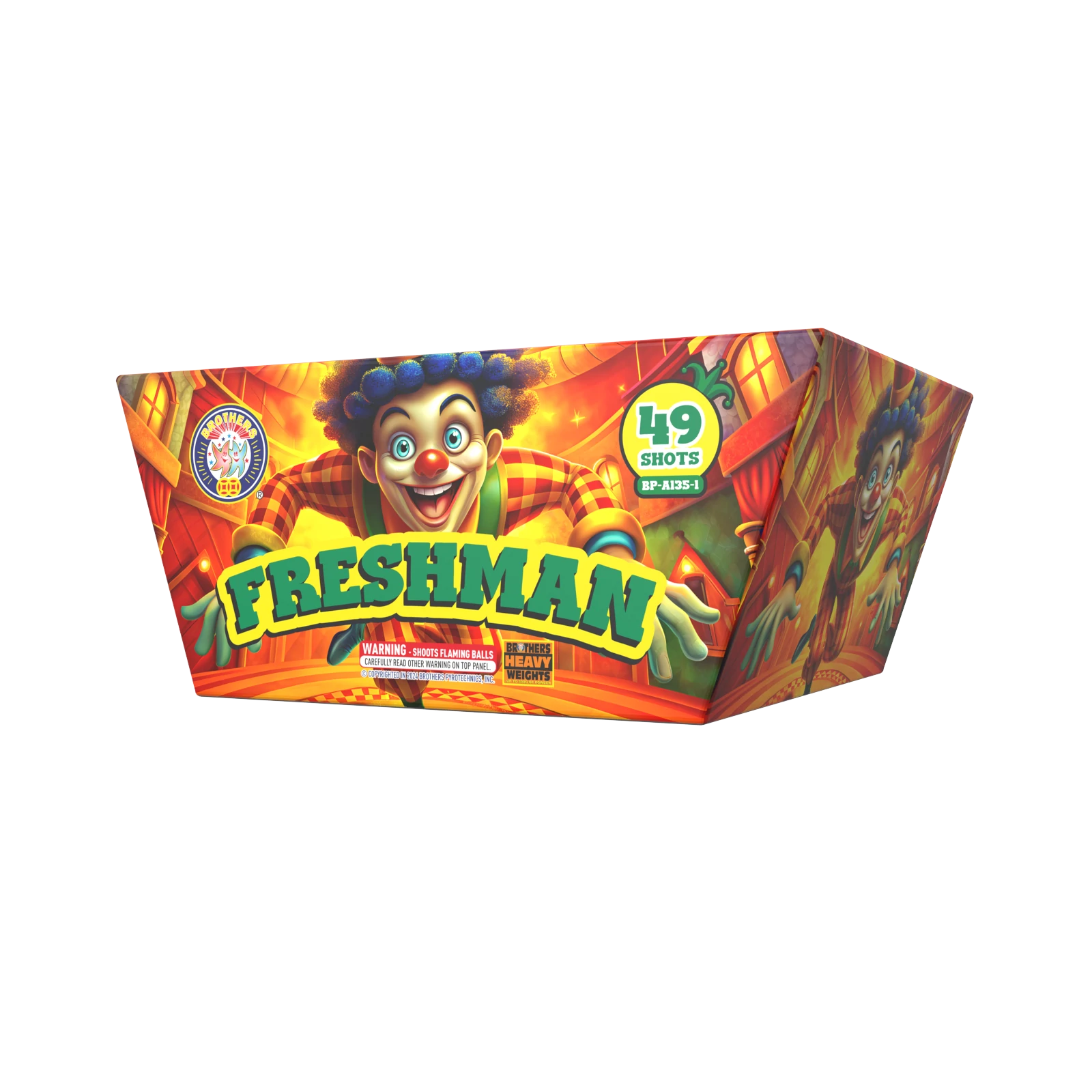 V-shaped effects. Alternating rows. Rows 1, 3 and 5 are four shots of red tails to red bouquets, green tails to green bouquets, silver tails to silver bouquets on the outsides, and three shots of gold tails to green stars with gold chrysanthemums in the middle. Rows 2, 4 and 6 are seven simultaneous shots of green tails to red falling leaves with blue stars. Ends with a seven-shot finale of gold tails to green with gold chrysanthemums. 49 SHOTS