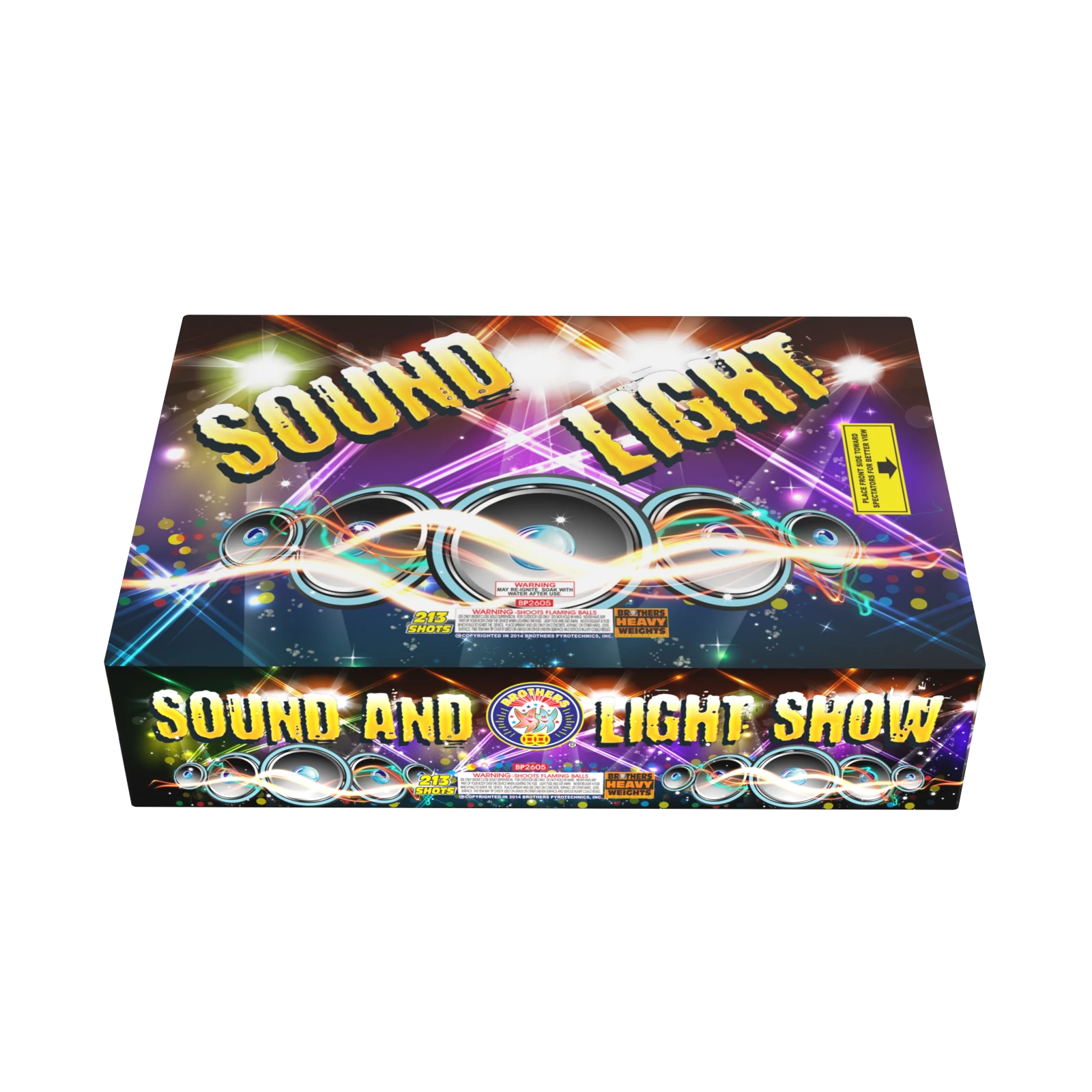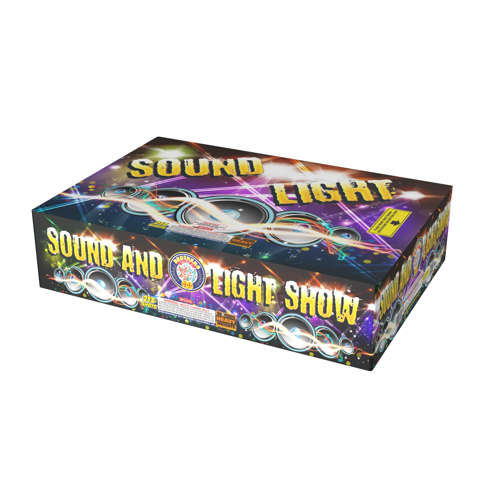 See the Sounds – Hear the Lights. Z-shaped alternating rows of red, white and blue stars, then, red stars, blue stars and silver glitter. Ends with a 3-shot blast of crackling bursts. 213 SHOTS