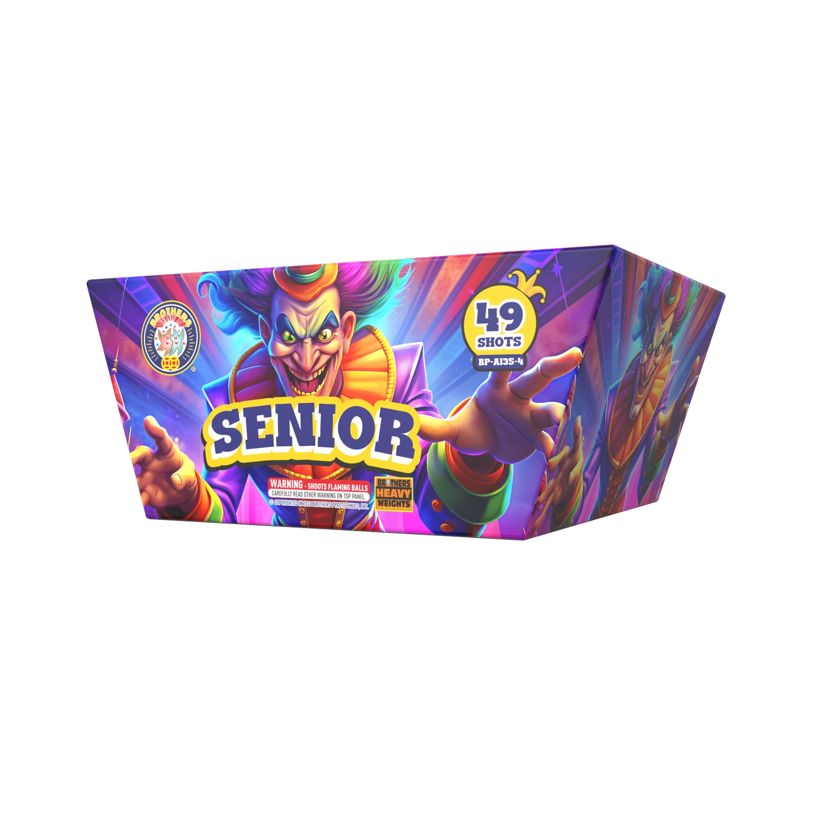 V-shaped effects. Row 1: four shots of silver tails to brocade with red glitter and three shots of red tails to blue stars with silver flying fish. Row 2: four shots of green tails to gold willows with green glitter and three shots of red tails to blue stars with silver flying fish. Row 3: seven shots of blue tails to gold glitter and delayed crackling. Row 4: seven shots of silver tails to brocade with red glitter. Row 5: seven shots of green tails to gold willows with green stars. Row 6: seven shots of red tails to blue stars with flying fish. Row 7: seven shots of blue tails to gold glitter with delayed crackling. 49 SHOTS