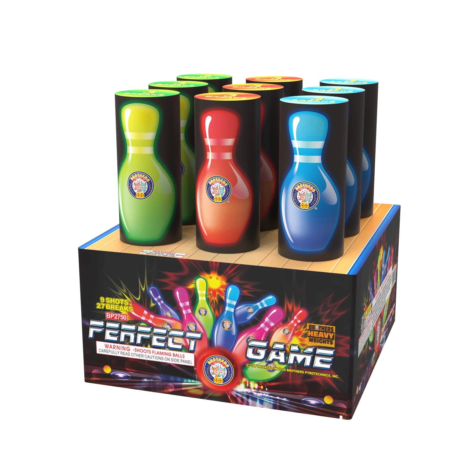 Nine pins, three breaks per pin. Brocade with green glitter to blue stars with red falling leaves, and brocade with red glitter to blue stars with green falling leaves. The last two pins are six breaks of brocade to silver glitter with jumbo crackling chrysanthemums. 9 SHOTS. 27 BREAKS