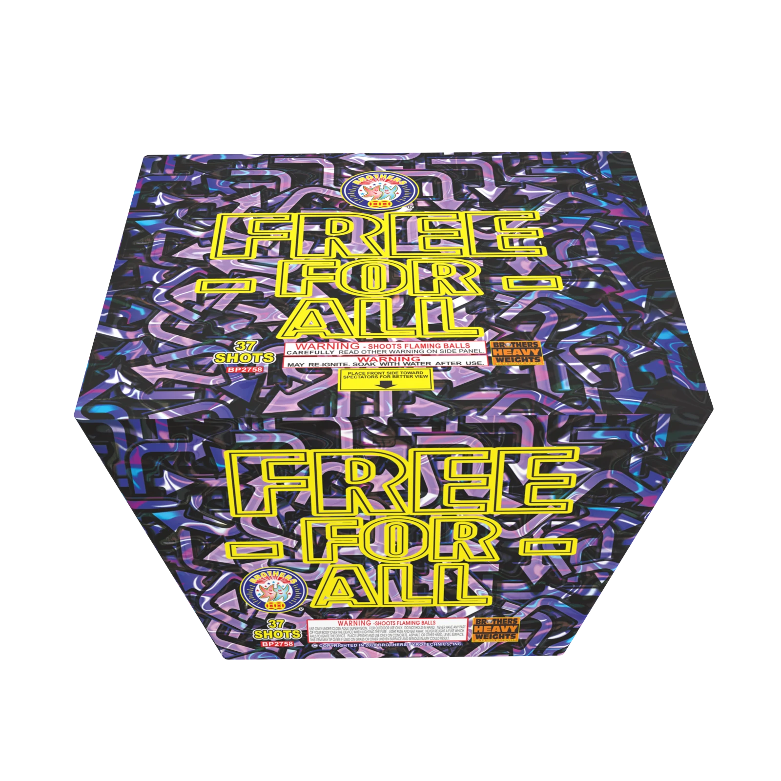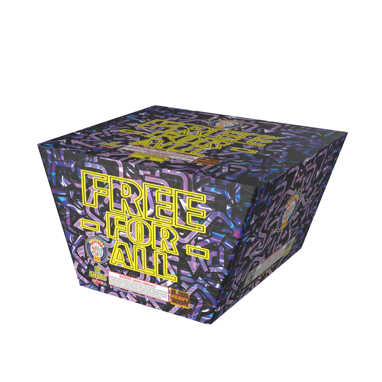 It’s a free-for-all of blue stars and red glitter mines to crackling tails to garnet stars with silver glitter, then to multicolored crackling comet tails, then to crackling tails to titanium palms with crackling, then to three-stage whistles, and finally to crackling tails to multicolored palms with silver glitter and crackling. 37 SHOTS